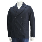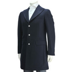 ハイドロゲン HYDROGEN × Luigi Bianchi Mantova ネイビーメルトンウール コラボレート シルバー&スカルメタルボタンで飾ったロング チェスターコート