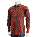 ベヴィラクア Bevilacqua レッド 太線でコミックタッチに画いた、新しいアンティーク風のフラワープリント長袖コットンシャツ、メンズ