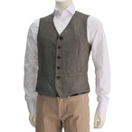 ラルディーニ ブラウン&ベージュミックス EASY WASH カシミアとコットンとウール混紡6つ釦シングルジレべスト