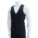 ラルディーニ メンズ ネイビー ワッフル系ソフトウール 模様織り 6つ釦シングルジレ ベスト