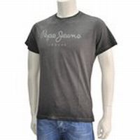 ペペジーンズ 半袖Tシャツ ガンパウダー メタルグレー系 ムラ染め ロゴプリント メンズブランド 18AW