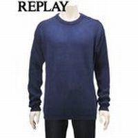リプレイ REPLAY メンズ コットンセーター リブ編みニット 左肩開き クルーネック ミドルゲージ オリーブグリーン 国内正規品