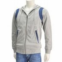 ディーゼル DIESEL ライトグレー&デニムブルー メンズ長袖ジップアップパーカ スウェット