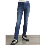 トラマロッサ TRAMAROSSA LEONARDO レオナルドモデル ブルーウォッシュ ダメージあり コットン100% ボタンフライ スリムテーパードジーンズ デニム