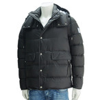 モンクレール MONCLER ブラックカラー フード一体柄 ローゲージニットを併せたレイヤードデザイン グレーの織りライン入りダウンパーカ フーデッド