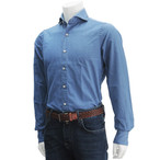 ボンサー インディゴカラーメンズコットンシャツ メンズ イタリア製 シャンブレー ワイドスプレッド ビッグサイズ