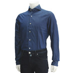 フィナモレ イタリアブランド メンズシャツ 無地ダークネイビーフランネル カッタウェイ 長袖