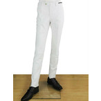 アルマーニ コレッツィオーニ ARMANI ホワイト 白革パッチを備えて完全なる白に挑んだスリムフィット、ジップフライストレッチパンツ、ホワイトパンツ、メンズ